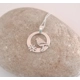 These Robin circle pendants have been made using a 20mm sterling silver off set washer. The washer has been lightly hammered before being set with a laser cut Robin and flower with a silver pebble centre. The laser cut Robin has a laser cut wing that has been cut separately and soldered together giving it lovely detail. The pendant comes on a 1.3mm sterling silver trace chain