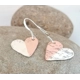 These two tone heart earrings have been made from sterling silver and copper sheet. The hearts have been cut out using my pancake die, cut in half and opposite halves soldered back together. They have a hammered finish and are hung on sterling silver earring hooks. Approx 20 x 18 mm